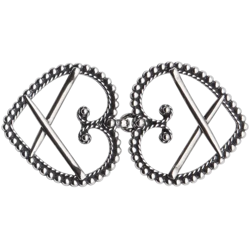 Beltespenne til Østfoldbunad. Den same særeigne hjerteutforminga finn du att i beltestølane som må seiast å ha det mest feminine formspråket. Til påsying på stofflist utan beltestølar.