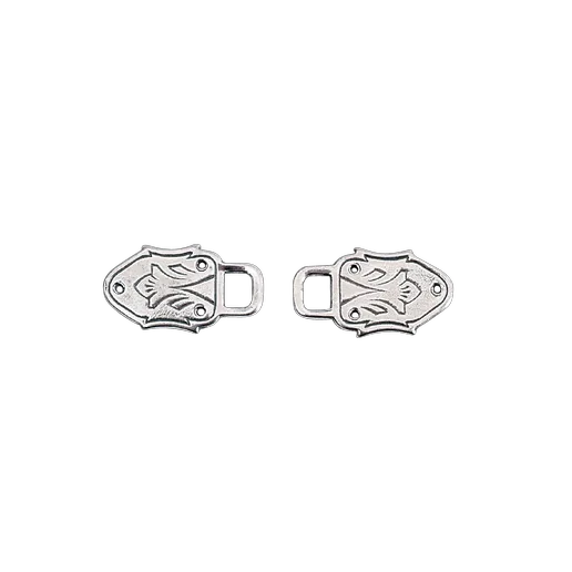 Små, flate maljer i oksidert sølv til Østfoldbunaden. Du treng 5 par som vert sydd på bunadlivet og snørt igjen med trekkekjede.