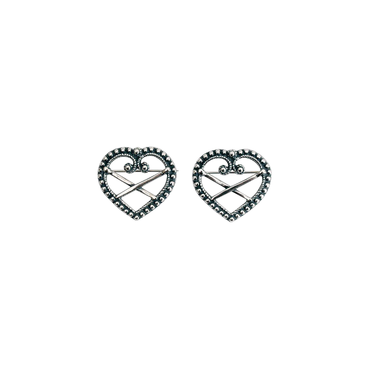 Sjalfeste i oksidert sølv til Østfoldbunad, inspirert av ei gamal, hjerteforma spenne frå Askim. Den same særeigne hjerteutforminga finn du att i beltestølar, beltespenne og capespenne til Østfoldbunaden.